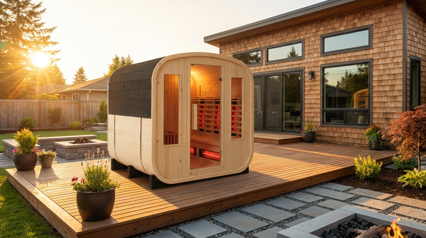 Sauna Type: Outdoor hybrid sauna (steam and infrared)