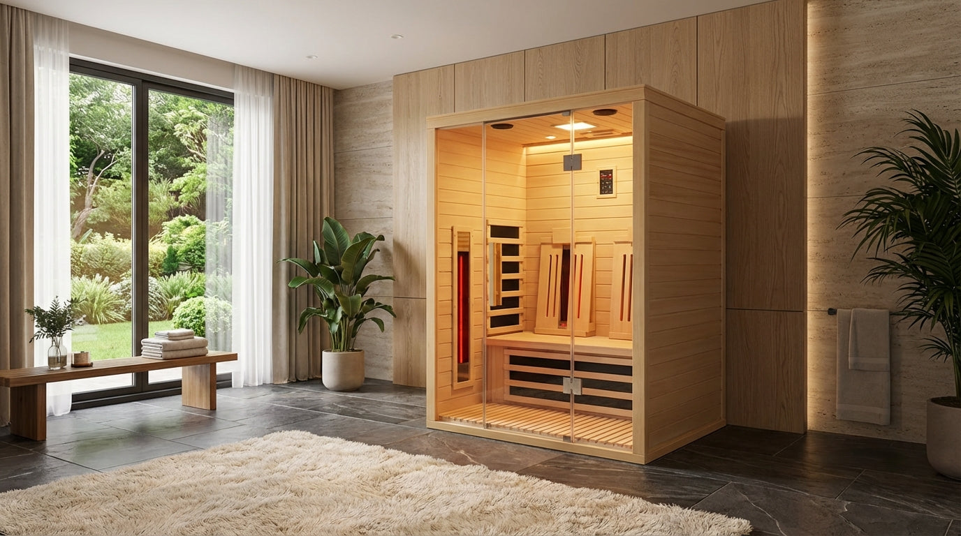 Built from durable, aromatic Canadian Hemlock, the cabin blends natural beauty with excellent thermal performance. Its clean, modern aesthetic fits seamlessly into home gyms, spare rooms, or dedicated wellness spaces, while the wood’s natural insulating properties help maintain stable, even heat throughout each session.