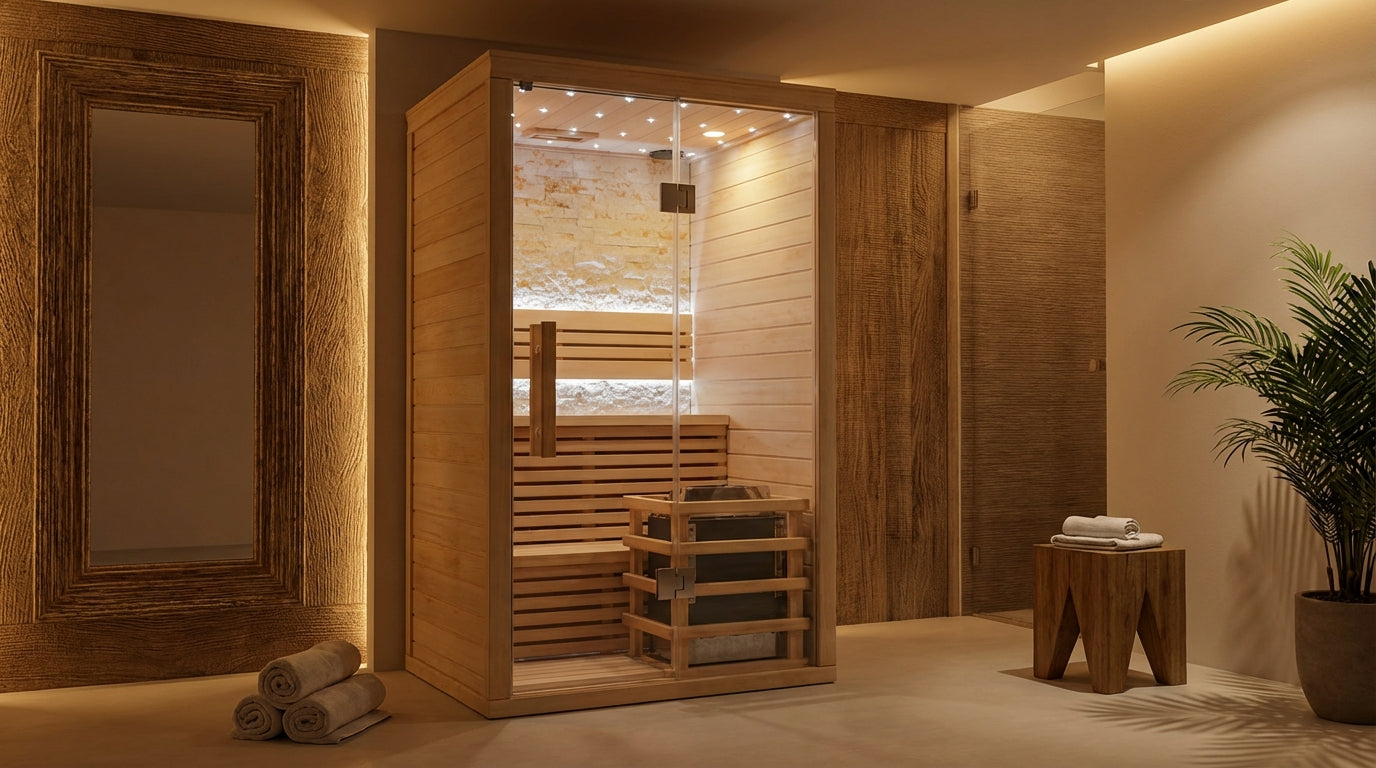 Sauna Type: Indoor hybrid sauna (steam and infrared)