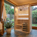 Beautifully crafted from premium Canadian Spruce sauna timber, this indoor sauna combines natural warmth with long-lasting durability. The double bench layout provides comfortable seating for up to two people, making it ideal for couples or individuals who want extra room to stretch out and unwind. Its efficient footprint allows it to fit neatly into dedicated wellness rooms, home gyms, or larger bathrooms without overwhelming the space.
